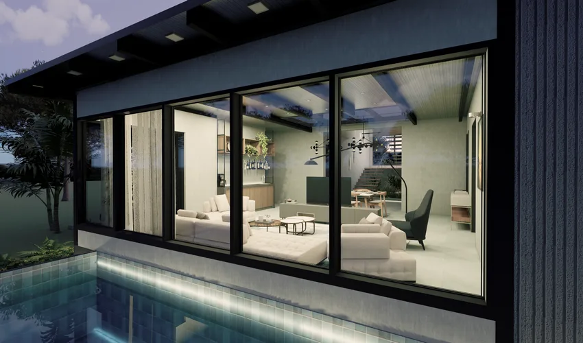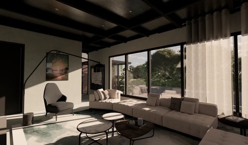 Inspired by the fluidity and serenity of water, the house embodies a harmonious blend of tranquility and sophistication. Through thoughtful integration of water elements and a palette inspired by aquatic hues.